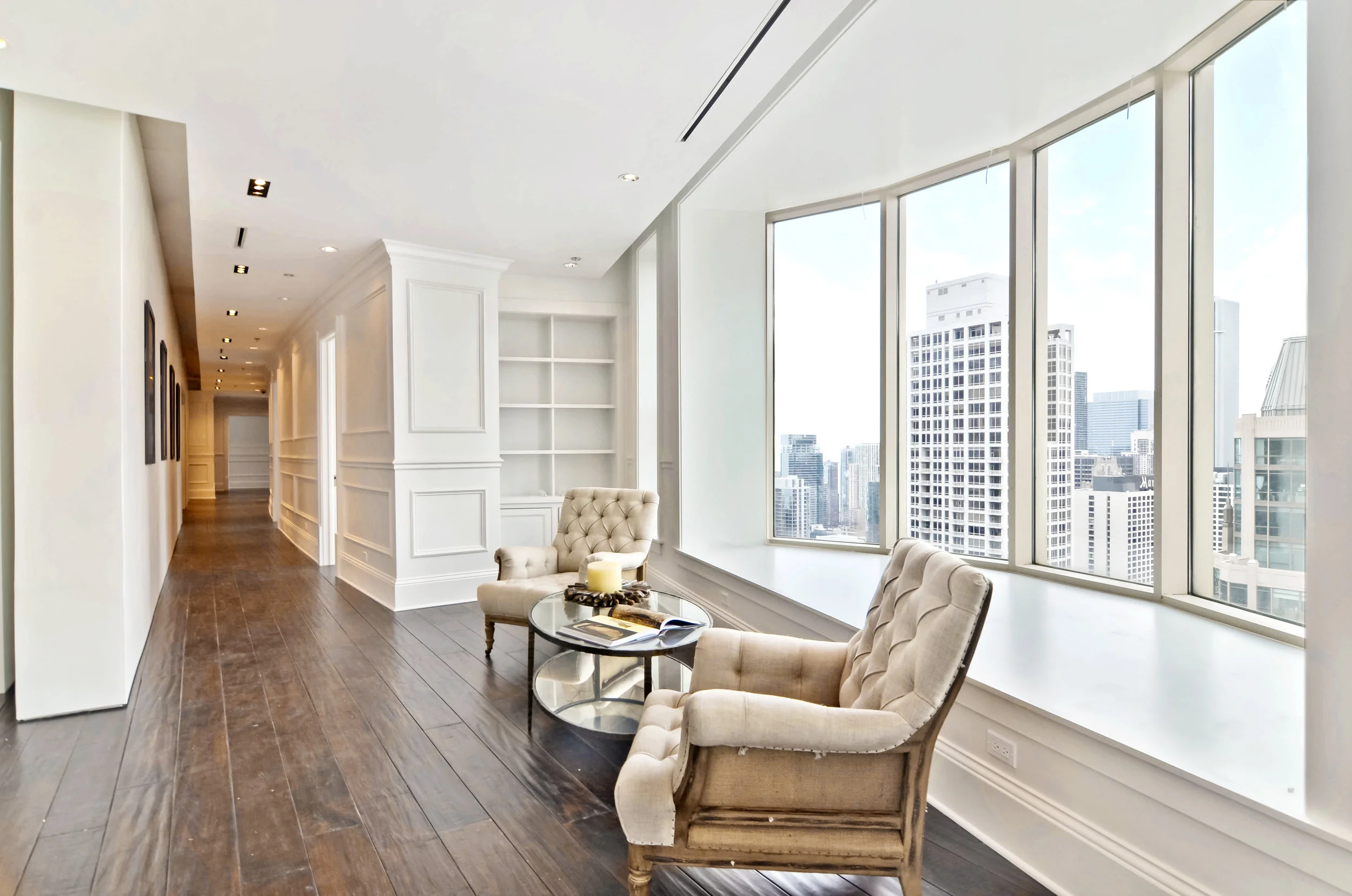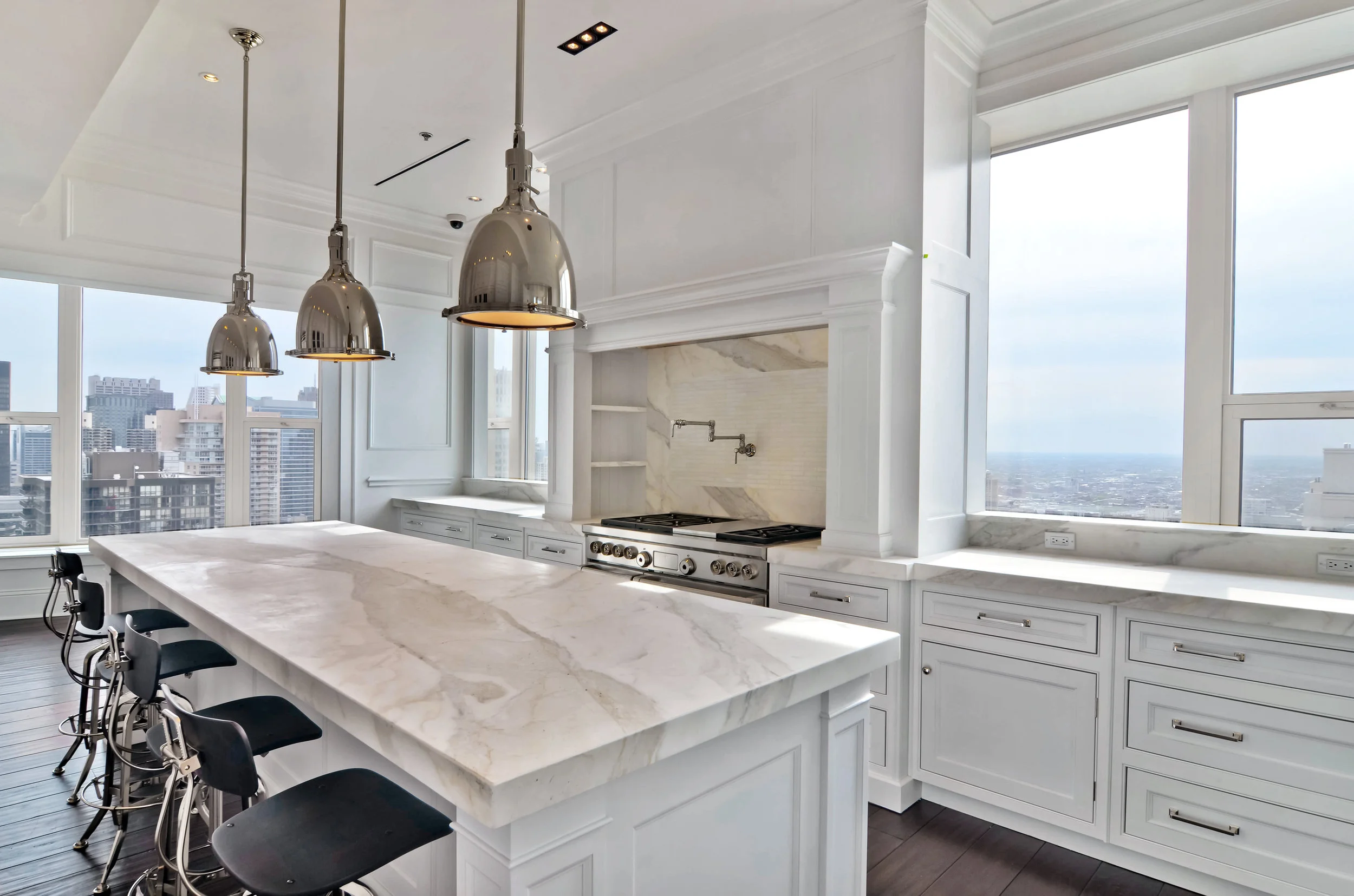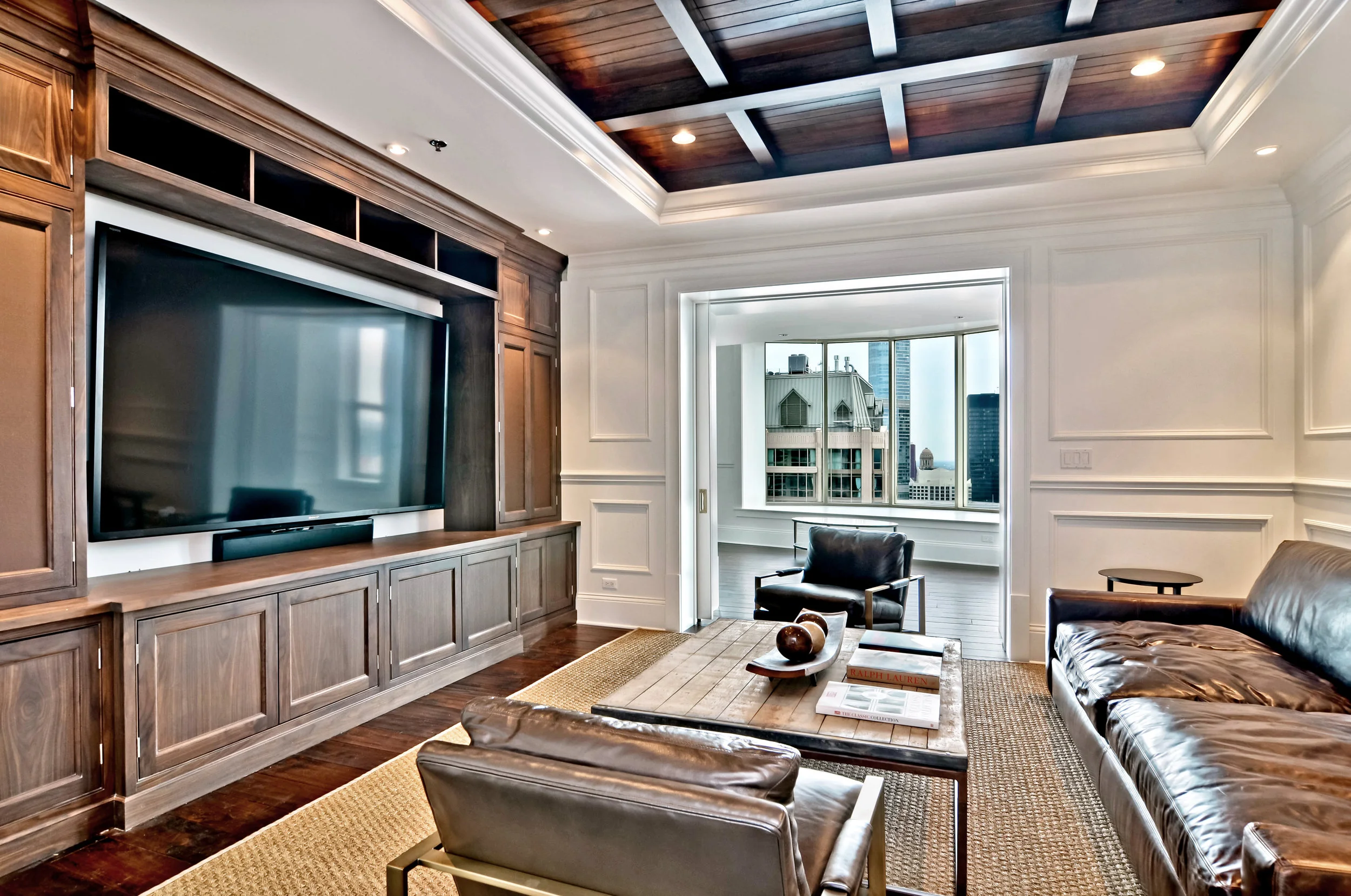 bamboo tongue and groove flooring, ceramic tile floors, stained brush pine wood veneer cabinets and panels, limestone tile, natural quartz countertop, sandblasted glass panels, opaque white glass mosaic tiles.
